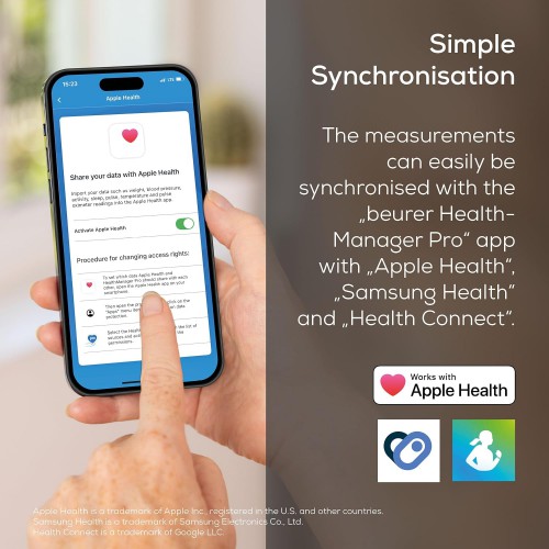 HealthManager Pro" החינמית באמצעות שידור Bluetooth וניתן לסנכרן אותם עם Apple Health, Samsung