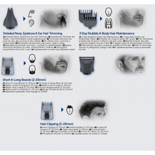 כל הפעולות במכונה אחת: מכונת תספורת, עיצוב זקן, גילוח שיער מהגוף