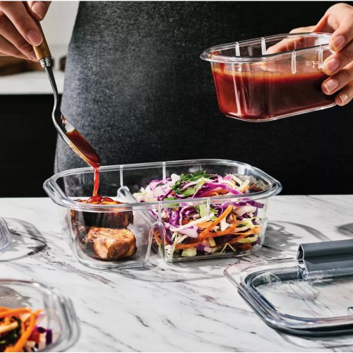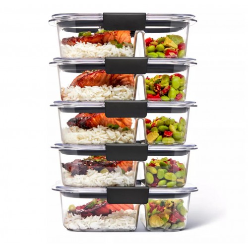 מכלים מחולקים של Rubbermaid Brilliance Meal Prep מובטחים שלא ידלפו, הם מעוצבים בצורה חכמה להפליא בעלי 2 תאים למילוי מנה עיקרית ותוספת קלה