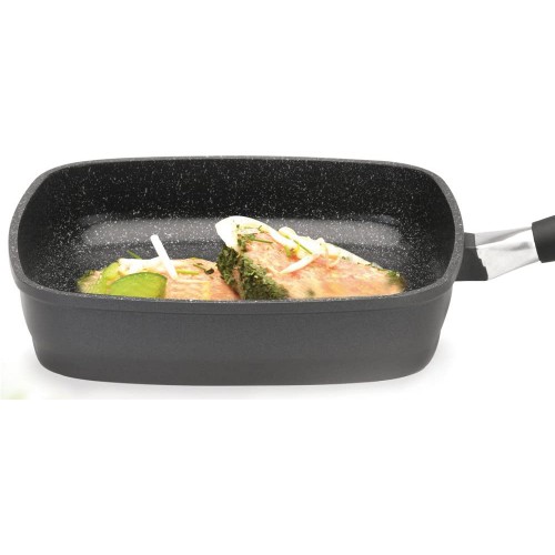 מחבת גריל בקוטר 28 ס"מ מבית BergHOFF הבלגית מסדרת Eurocast Professional המחבת הבלתי נדבקת שנועדה לבישול בריא. אם אתם משתמשים בעת הבישול בשמנים, שומנים או חמאה אך ורק כדי למנוע מהאוכל להידבק אז עם סדרת BergHOFF Eurocast אתם יכולים לבשל בלעדיהם
