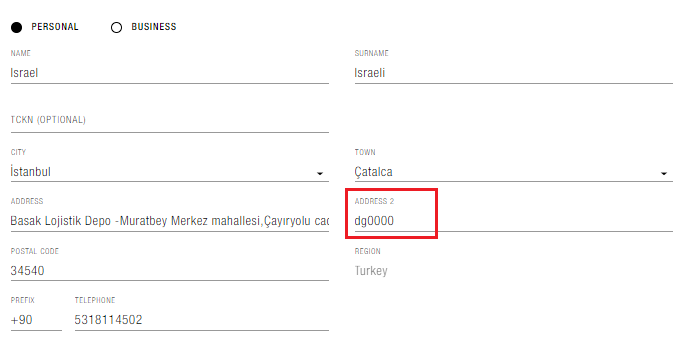 - ב- address Line 2 נכניס את המספר המזהה האישי (מספר ה-DG המופיעה באזור האישי באתר idgu)