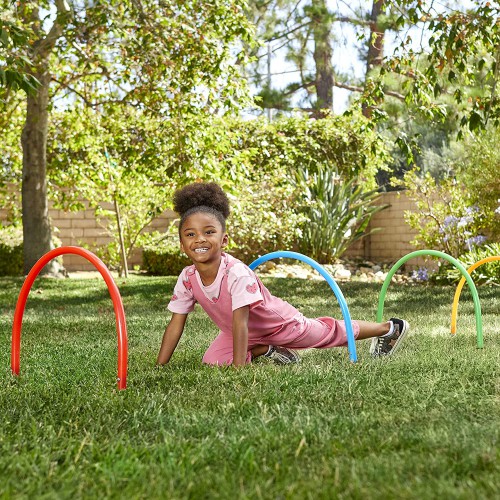 5 מסלולי מכשולים: ריצת חישוק, כישורי כדורגל, זחילת מנהרה, קפיצה