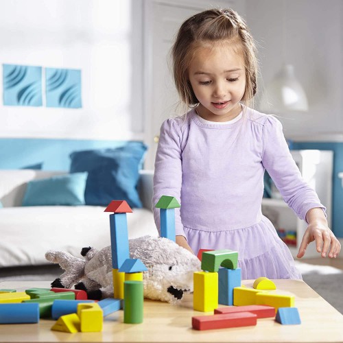 סט 200 בלוקים בארבע צבעים ותשע צורות שהבנאי הקטן שלך יכול לערום,