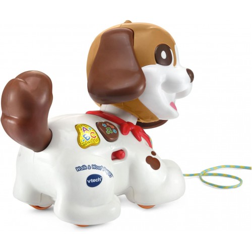 צאו לטיול רגלי עם גור כלבים מתנדנד בזמן שהוא נמשך בעזרת הרצועה