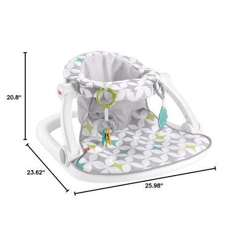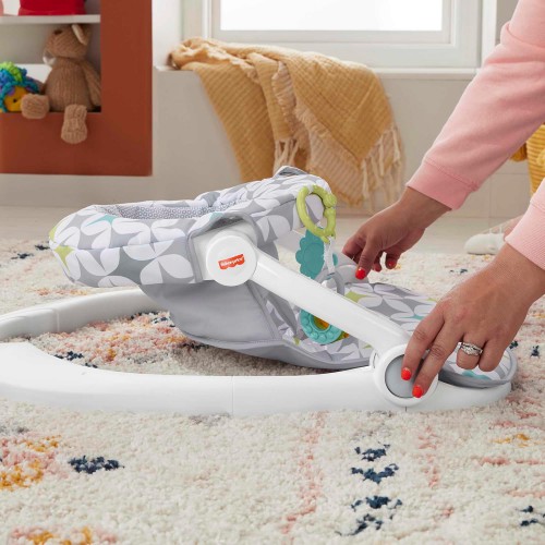מושב הרצפה לתינוק של פישר-פרייס בעל בד רך ובסיס רחב וחסון מאפשר לתינוק לראות ולתקשר עם העולם סביבו, מקום נוח ותומך לתינוק להירגע ולשחק