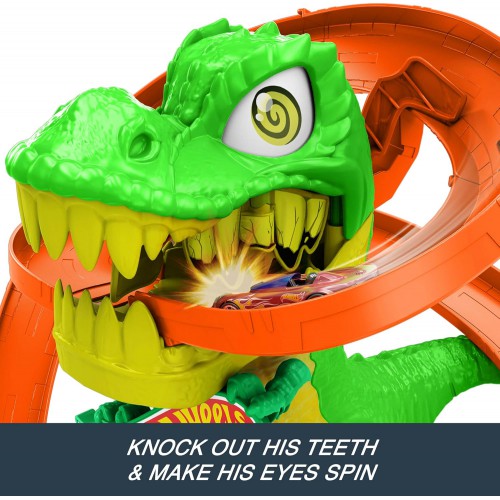 ערכת המשחק כוללת אויב דינוזאור גדול בעל עיניים שמסתובבות בכל פעם