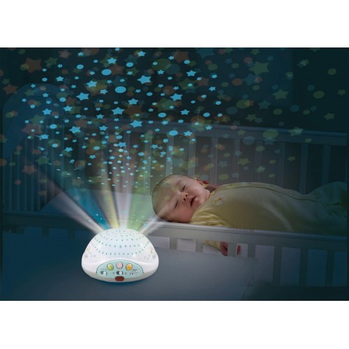 מקרין דפוסי אור צבעוניים המסייעים לעורר מודעות חזותית תוך כדי סיוע לקטן שלך להירדם