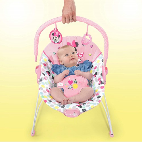 מוט צעצועים קדמי, הניתן להסרה, כולל שני צעצועי תלייה: רעשן לב ומראה מיני מאוס למשחק והנאה