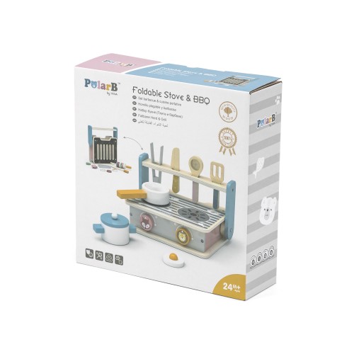 מטבח צעצוע נייד מעץ עם כיריים 2 ב-1 כיריים בצד אחד וגריל ברביקיו