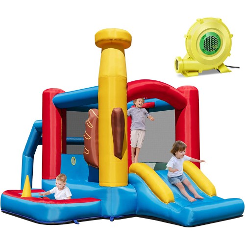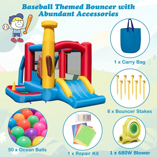 טירת קפיצה מתנפחת עם אלמנטים שונים בנושא בייסבול הכולל מספר