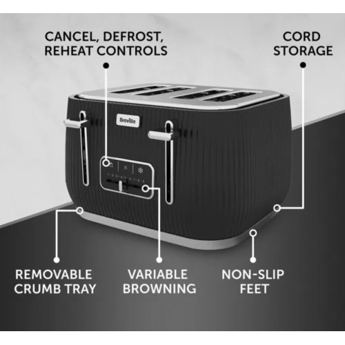 מצנם מעוצב ויוקרתי לקליית 4 פרוסות לחם בגימור שחור